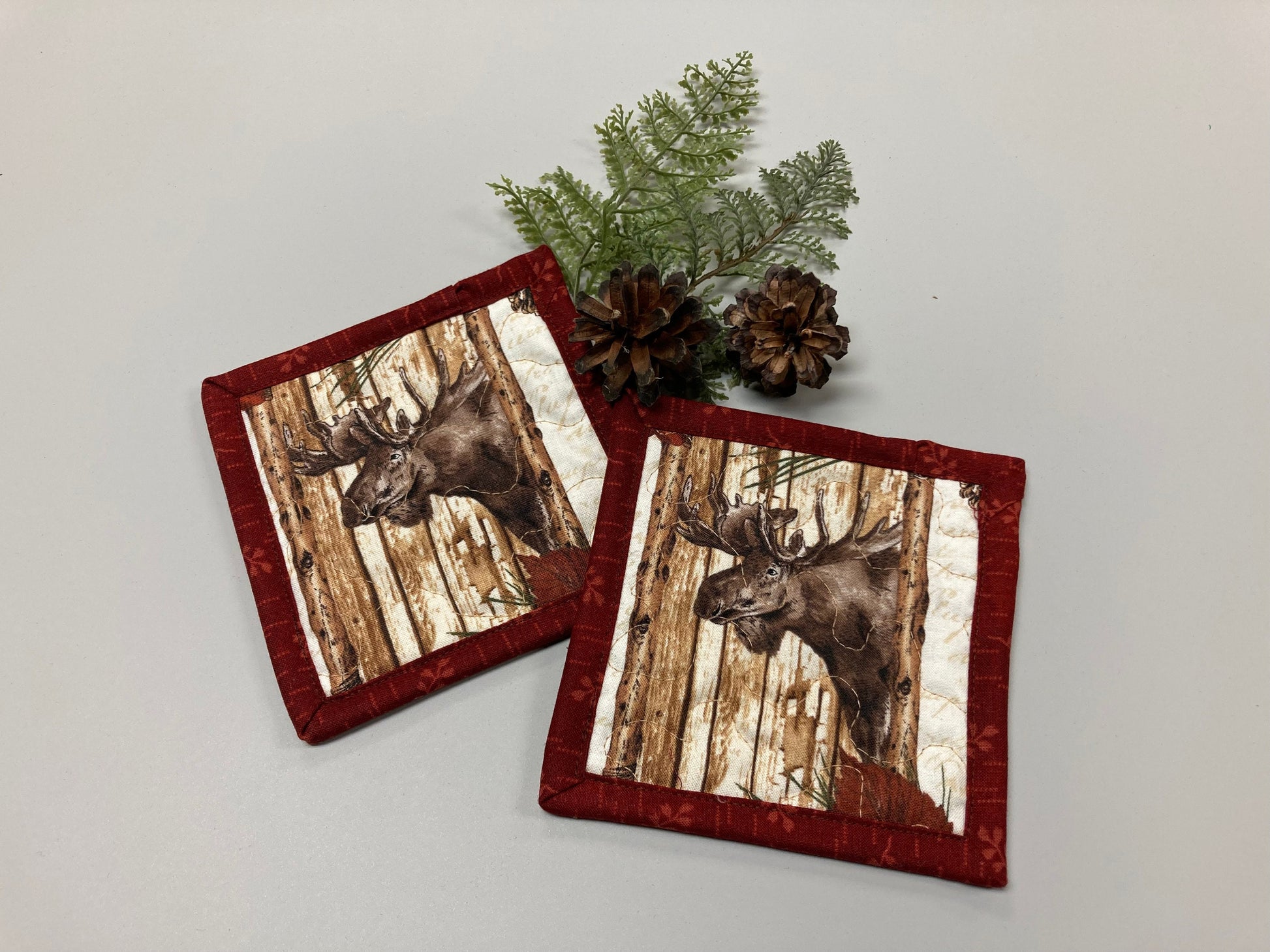 Mounted moose head coasters are perfect for your lodge cabin decor or that hunter in your life. Coasters can be used for hot or cold drinks. The large size is perfect for coffee/tea mugs, snacks, or just a pretty spot of color on your table. This listing is for a set of two mats.