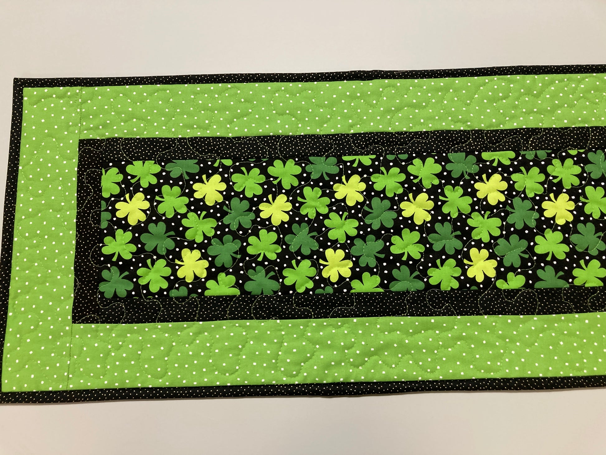 St Patrick's Day Shamrocks Quilted Table Runner, 13x48" Reversible Spring Flowers, Dining Coffee End Table St. Paddys Day, Easter Handmade