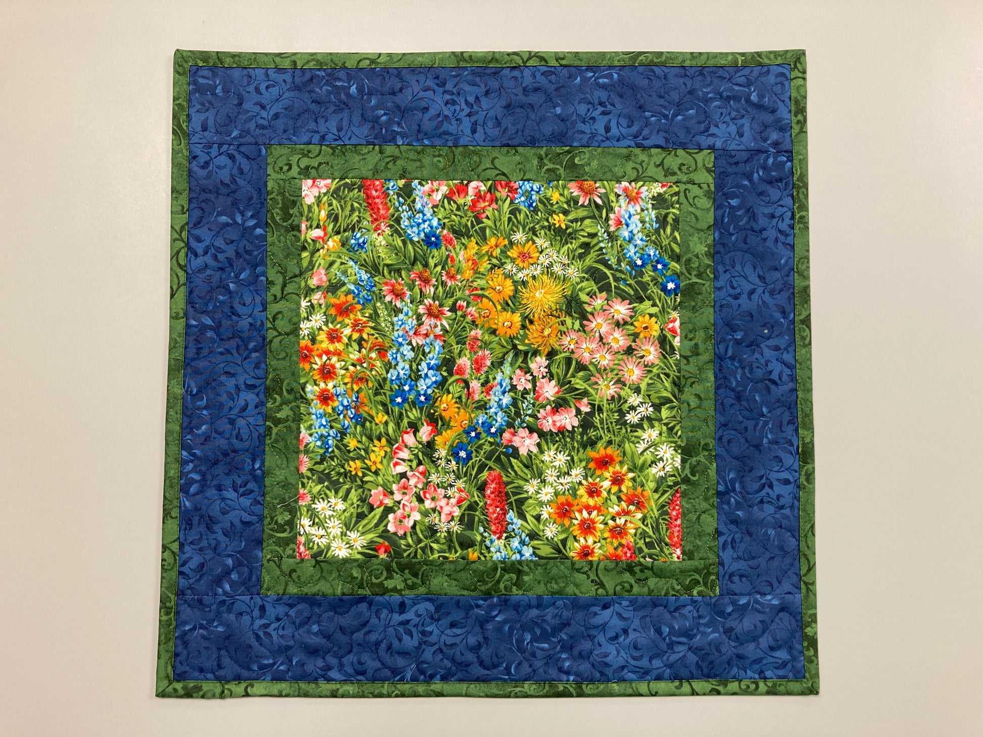 Summer Wildflowers Quilted Table Square 18x18" Dining Coffee or End Table, Spring Decor Handmade Reversible