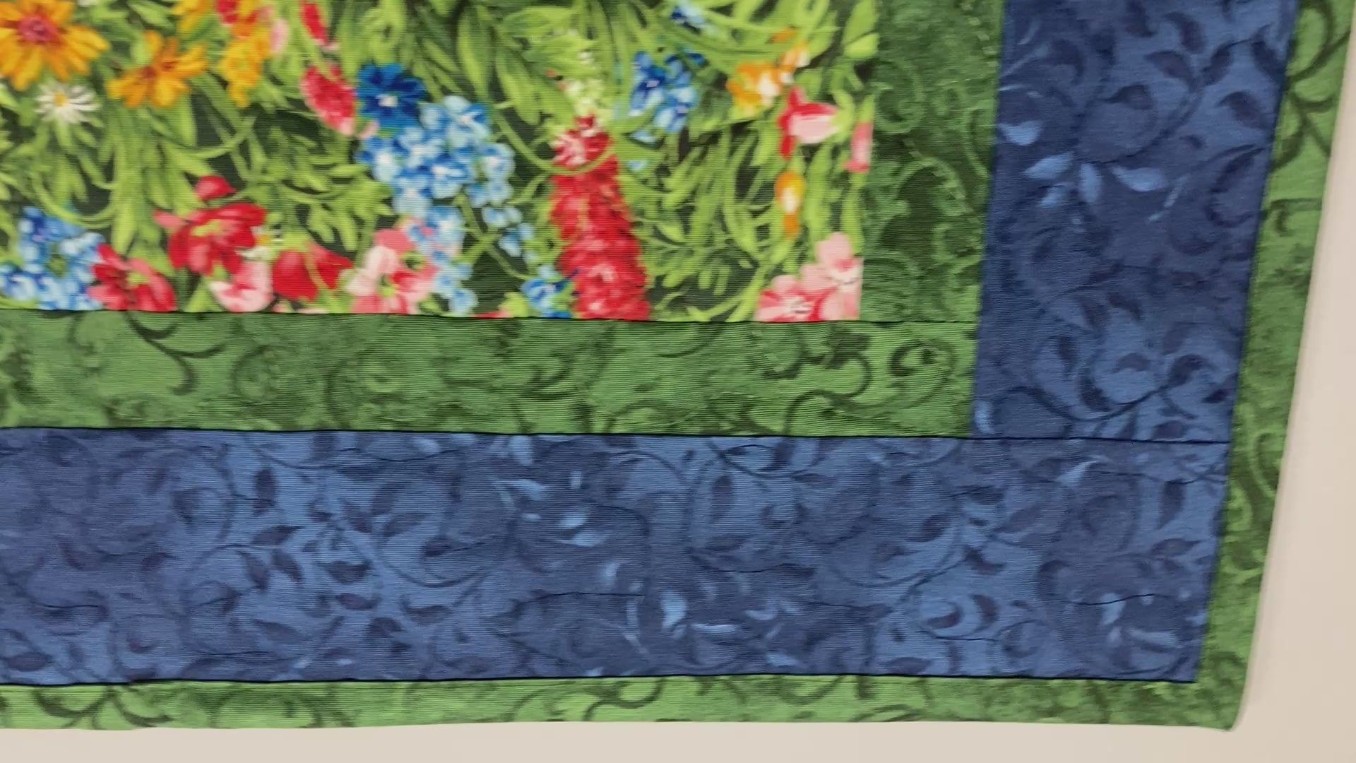 This wildflower table topper is perfect for your spring and summer entertaining. Blue, yellow, and red flowers, set among green leaves, adorn the middle of this mat. A beautiful addition to any table in your home to remind you all year long of a summer splendid garden.